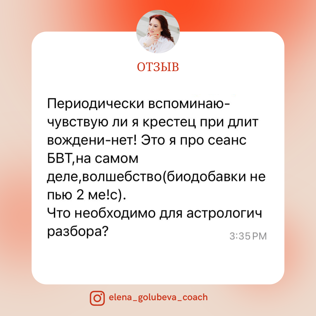 «Лена, привет ещё раз, не помню, я с тобой поздоровалась или нет? Я хочу поделиться с тобой своими впечатлениями от сеанса. В общем, в начале у меня было впечатление, что у меня в голове, как будто бы операционная, причём я её видела, знаешь, вот как некое такое очень светлое пространство. Ну, обычно да, там операционная может вызывать какую-то тревогу, либо напряжение. Нет. Я просто знаешь, созерцала, и там суетилась команда врачей. Как минимум трое вот именно именно врачи. В общем, затем явно сменились энергии, сменилась сама процедура, и все сильно пошло в тело. И вот в теле я уже испытывала совершенно разные состояния, и в грудной клетке было много расширения и в ногах. А вот ещё интересное, что в самом начале у меня стала активна 2 чакра. Вот именно 2 чакра, просто хана как была активна, и она была, ну, какое-то длительное время, то есть ещё до операционной. Я ещё так наблюдаю, думаю, вау, а ты здесь, причём. И потом я уснула. Я почувствовала, как мне кажется, что произошло завершение собственно самого сеанса. Но энергии продолжали идти и быть очень мощными. Я отменила встречу и правильно сделала. Я легла спать и что я тебе хочу сказать, что я спать легла и проснувшись, ну, я не знаю, сколько проспала, час полтора и проснувшись, я все ещё чувствовала такие активные процессы, которые происходили и в течение дня. Знаешь, так фоново, очень приятно. Я все это ощущала, и ты знаешь, я отказалась от какой то привычной там многозадачности ,не хочу. Я хочу, просто, знаешь, действительно побыть для себя и в себе, и вот так я и провела целый день. Я тебе очень благодарна, это, это такое кайфовое чувство. Я убеждаюсь, что это, как знаешь, это как даже терапия, психотерапия, да, вот такого характера. Ты можешь сколько угодно обладать инструментами, но человеку нужен человек и все-таки развивается и, думается, лучше друг об друга. Поэтому я тебе, я тебя бесконечно благодарю за эти сеансы, это какое-то волшебство, и это, это бесценно для меня. Спасибо тебе огромное!