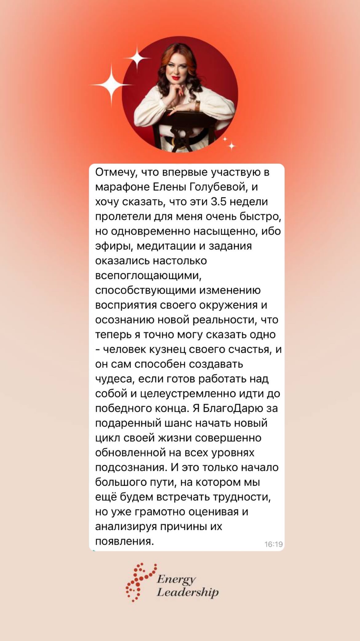 - И главный БОНУС курса-Энергетический сеанс на “Исполнение Желания” через энергию нового времени, принятой Еленой Голубевой в Августе 2024!